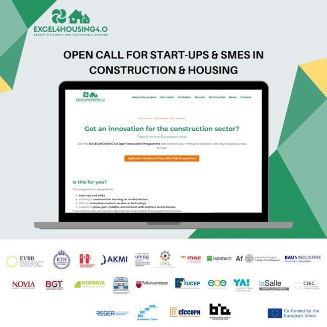The EXCEL4HOUSING 4.0 Open Innovation Programme is now accepting applications from start-ups and SMEs working in construction, housing, and related sectors. If you have developed an innovative solution and are ready to take it beyond your local market, this programme offers a concrete pathway to European scale.